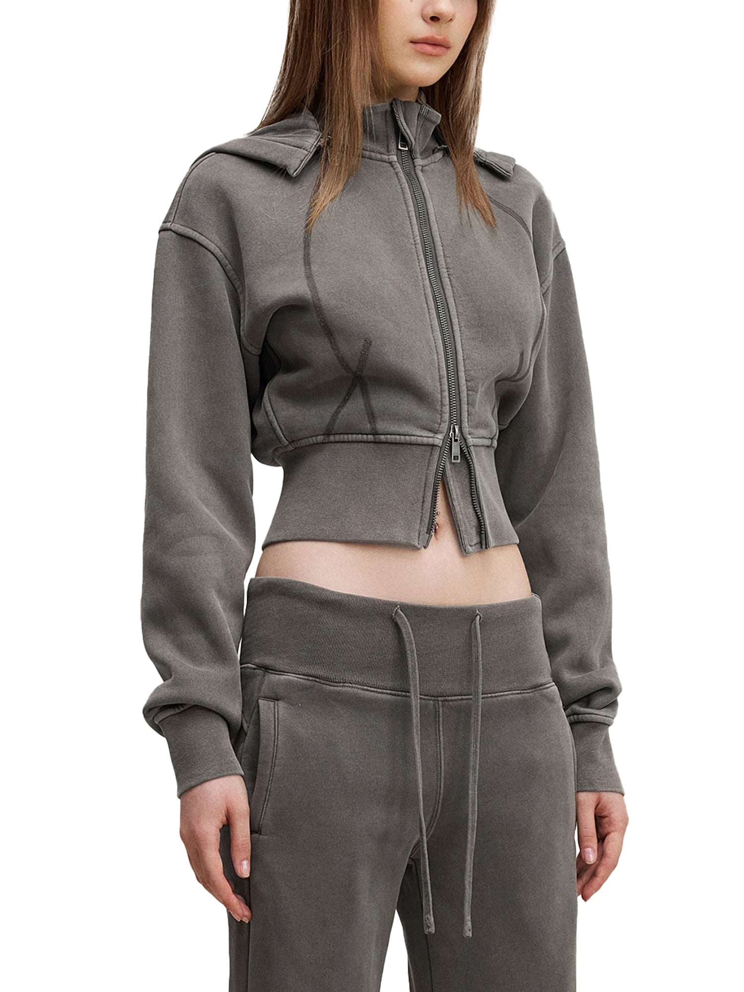 Vintage Washed Cropped Fleece Hoodie